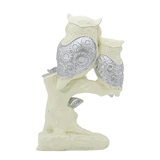 Polyresin Owl Set of 2 Showpiece for Table Decor White & Silver Handmade Figurines for Home Dcor, Resin Tabletop Decor